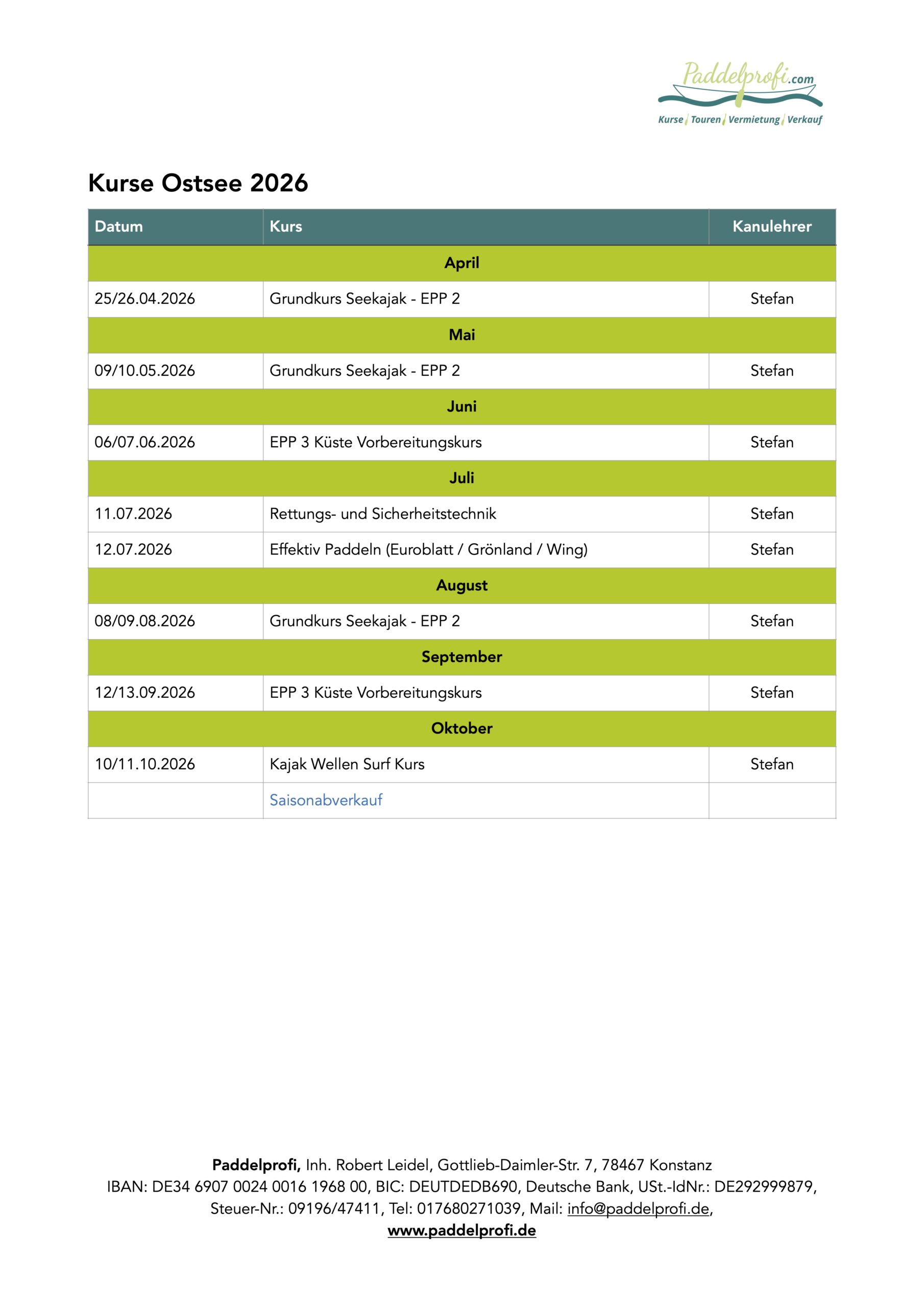 Kursübersicht Ostsee 2026